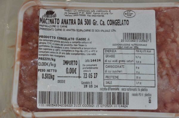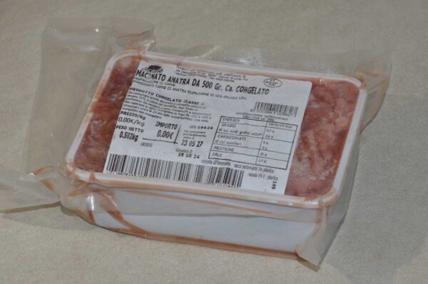 Il macinato d'anatra è composto da pura polpa tritata con l'aggiunta di un pizzico di sale.