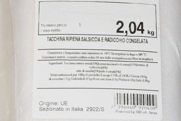 TACCHINA DISOSSATA RIPIENA SALSICCIA E RADICCHIO 1,5KG PV