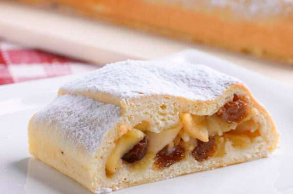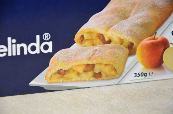 Strudel di mele MELINDA in pasta Frolla già cotto deriva dalla rivisitazione del pasticcere Giuliano Graziadei di un’antica ricetta del Trentino. Lo strudel della nonna evoca fortemente le atmosfere alpine attorno al focolare.