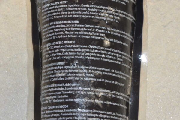 Astice Americano Canadese precotto. L'astice ha bisogno di essere cotto completato nella cottura in due minuti di bollitura, oppure da scongelato si può mettere tagliato a metà sulla piastra e cotto per un paio di minuti; condito poi con una salsa al burro e limone o con della maionese. Squisito per fare un sugo e condire la pasta.Le carni sono dolci e il gusto è delicato.