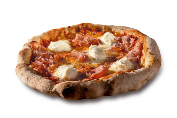 Pizza al prosciutto e marscarpone preparata con il metodo a Doppia Lievitazione. Acqua, farina e lievito madre riposano una notte intera e il giorno dopo, al secondo impasto, si aggiungono la farina di grani antichi Tumminia e l’olio di oliva extra vergine. Per il massimo del sapore, della friabilità e della digeribilità. Pizza da gustare in tutta la sua bontà come pasto o come snack tagliata a spicchi da servire in occasione di una festa o con un aperitivo tra amici.
