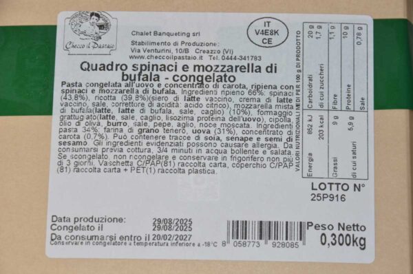QUADRO SPINACI E MOZZARELLA DI BUFALA 300 GR LA PASTA DI CHECCO