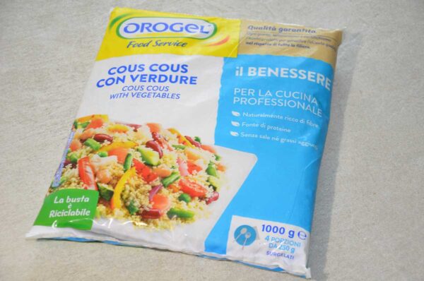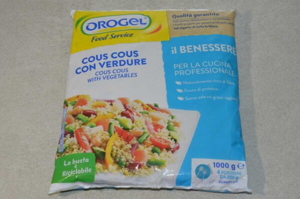 Il Cous Cous con Verdure Orogel è preparato con tante verdure, già tagliate in piccolo formato, e cous cous, pronti in pochi minuti per un mix colorato e versatile. Grazie alla busta da 1.000 grammi puoi avere sempre in freezer la soluzione ideale per proposte vegetariane e vegane, da personalizzare ogni volta con la tua creatività. Provalo anche in vasocottura per proposte originali per la pausa pranzo.Ideale da mangiare così, oppure abbinata a carne o pesce.