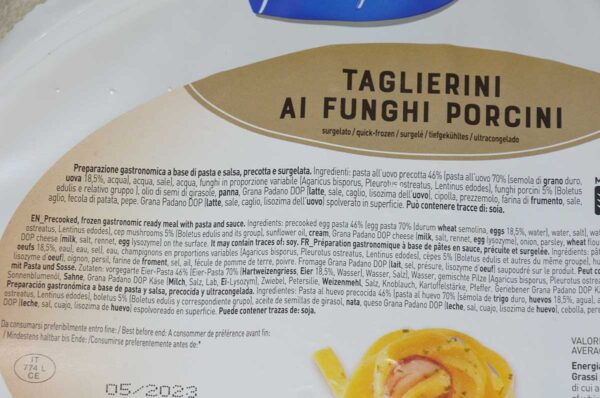I taglierini di pasta all'uovo Fiordiprimi conditi ai funghi porcini, sono una specialità surgelata della tradizione italiana preparata con pasta fresca di qualità e un sugo creato con ingredienti selezionati. Pronta in pochi minuti al forno a microonde per gustare un buon primo piatto pronto in pochi minuti in forno microonde.