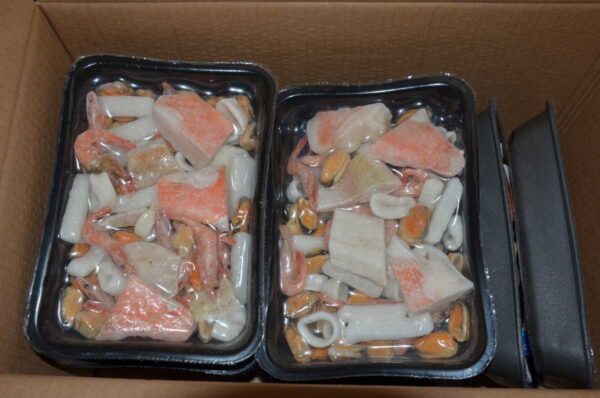 Preparato per zuppa di pesce misto da cuocere con l'aggiunta di brodo e aromi a piacere.