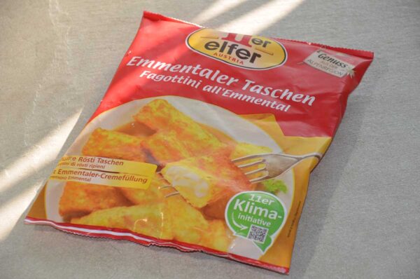 I FAGOTTINI CROCCANTI ALL'EMMENTHAL 11er sono preparati con patate e farciti di cremoso Emmental, precotti in olio di girasole e surgelati.