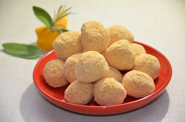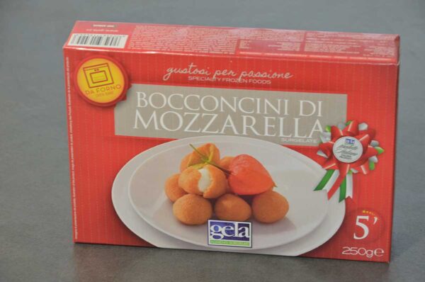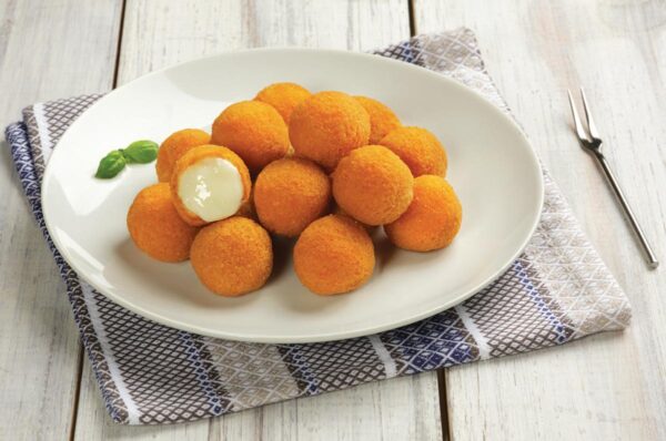 Bocconcini di mozzarella panata da cuocere in forno. Caratteristica forma ovale, costituito da bocconcini di mozzarella panati e surgelati. Pronto per la cottura in forno o per la frittura.