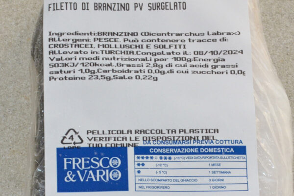 Filetti di branzino 120/160 gr.congelati in iqf. Filetti da porzione già squamati e pronti da cucinare dopo lo scongelamento.Le carni sono ottime per preparare secondi piatti alla griglia, in padella con verdure di stagione o gratinati al forno con un mantello di zucchine e patate.