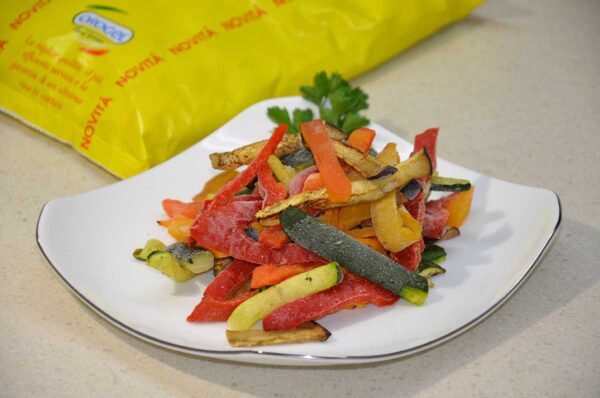 Il Tris grigliato stick Orogel è un misto di verdure grigliate e surgelate composto in proporzione variabile da melanzane, peperone e zucchine.