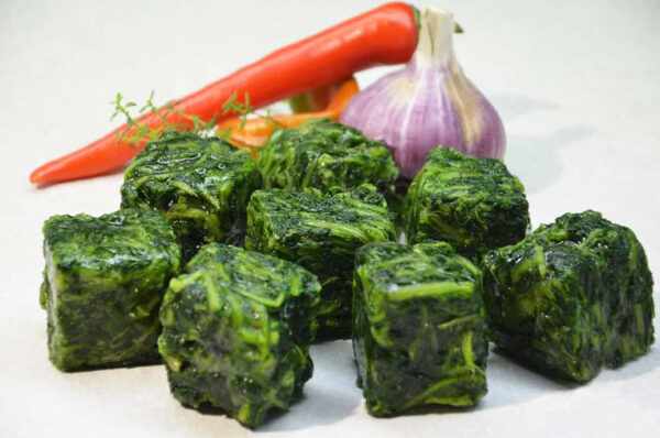 Cicoria scottata a vapore e cubettata in porzioni da 50 gr.surgelata in iqf