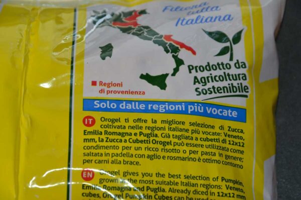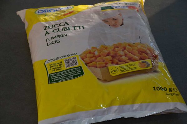 POLPA ZUCCA CUBETTATA OROGEL 1KG COD: 567234 Prezzo al KG: 3,79 € APRI ETICHETTA €3,79 / CF Descrizione Cubetti di zucca scottata a vapore pronta all'uso. Temperatura di conservazione: -18C Potrebbero interessarti anche Aggiungi alla lista dei desideri PATATE GRIGLIATE AL ROSMARINO GIAS 450GR € 2,39 /CF Prezzo al Kg 5,31 VAI AL PRODOTTO Aggiungi alla lista dei desideri GRANMISTO FUNGHI CON PORCINI ASIAGO 300GR € 2,49 /CF Prezzo al kg 8,30 VAI AL PRODOTTO Aggiungi alla lista dei desideri MISTO PER SOFFRITTO GREEN ICE 1 KG € 2,9 /PZ Prezzo al KG: 2,90 € VAI AL PRODOTTO
